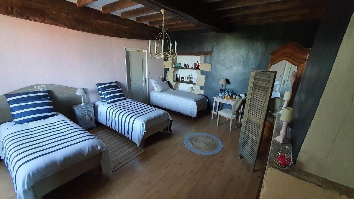 Access via an independent entrance, in the heart of the building dating from 1680, via the picturesque staircase of the tower which will guide you to the second floor of this charming gîte/duplex (rated 3 stars), offering a total area of 75 m², on two levels.